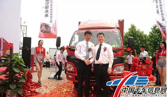 福田汽车集团欧马可业务总监、欧马可事业本部本部长顾德华(右)与北京福田康明斯发动机有限公司总经理关章华为欧马可2.8L气刹新品揭幕