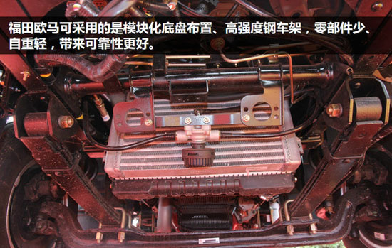 另外,福田欧马可采用的是模块化底盘布置、高强度钢车架,零部件少、自重轻,带来可靠性更好。