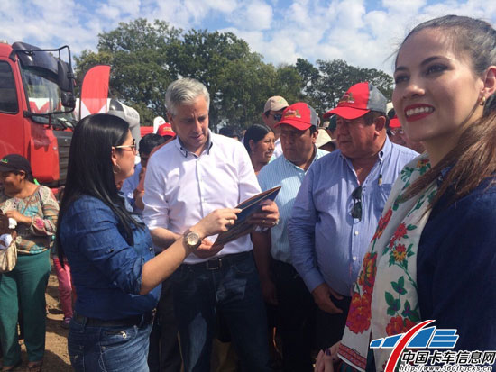 小编还了解到,为扩大华菱(CAMC)品牌在当地的知名度和影响力,抢占市场份额,做好品牌营销,玻利维亚的CAMC经销商在厂家的支持下积极推行“走出去”战略。近日在圣克鲁斯就举办了一场CAMC重卡推荐会。玻利维亚副总统加西亚亲临现场,引起当地媒体很大的关注。在耐心听完经销商对CAMC车的介绍后,加西亚表示欢迎这么好的中国卡车进入玻利维亚市场,希望CAMC车能更多地帮助本地基础设施建设,政府也将积极推动相关部门与CAMC建立长期稳定的合作关系。