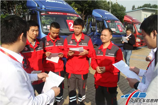 考试内容紧紧围绕车辆的实际运行故障和维修知识等方面设置。在实操考试场地,五辆欧马可三系牵引车整齐排列,监考人员通过预设车辆常见故障,考察参赛人员发现分析判断问题和解决问题的能力。真正考验了服务技术人员的服务技能水平。整场考试紧张有序,考试氛围认真严肃。