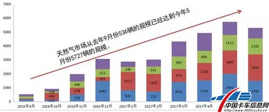 如果说“环保”是燃气车需求上涨的“助推器”,那么新国标GB1589-2016和“9·21”治超新政则是“催化剂”。车型标准的限定和超限超载的规范,极大刺激了客户的换车需求。同时,自去年原油价格触底并持续反弹以来,油气差价逐渐恢复到 2013 年高油价时期的水平。目前油气比价为 0.53,天然气车型经济性凸显,天然气车辆的产销量也实现从2016年四季度至今的持续快速增长。对用户来讲,选购天然气车型,就等于赢在了起跑线。