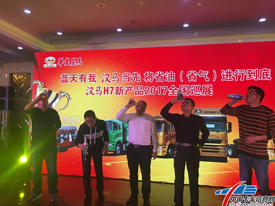 10月13日,华菱全新产品——汉马H7巡展车队信心满满,开进了草原明珠,接受当地客户的现场检阅。当天,集团公司总经理助理葛晓生,鄂尔多斯市飞宇汽车销售有限公司董事长刘志焕、总经理吕君孝,鄂尔多斯周边地区多家物流公司、终端用户齐聚一堂,共享午宴,一起品鉴汉马H7新品。