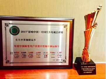 1月13日,第七届中国汽车电视总评榜颁奖盛典在中国极边第一城——腾冲隆重召开。“中国汽车电视总评榜”颁奖评选每年一届,作为中国汽车电视联盟精心打造的品牌活动,中国汽车电视总评榜已成为国内最权威和最具影响力的汽车价值评价体系,以其公正、权威、公信力,弘扬年度车坛主旋律,直接影响着中国成千上万的消费者与汽车厂商。经过几轮激烈角逐,长久中置轴车辆运输车斩获年度中国最受用户喜爱中置轴车辆运输车大奖。