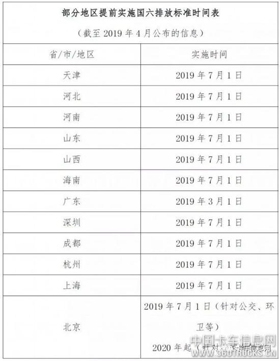 这意味着,在相应时限到来时厂家将不得再生产、销售排放不达标车型;各地车管部门也将对老排放标准车型上牌说“不”。政策发布后,各地区陆续公布了国六排放标准实施的时间表。其中河北、河南、山东、山西、海南等地将于2019年7月1日起实施新国标,早于生态环境部2020年的时限。
