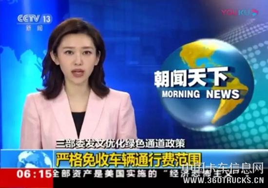 8月7日,CCTV朝闻天下发布报道:三部委发文优化绿色通道政策,严格免收车辆通行范围。