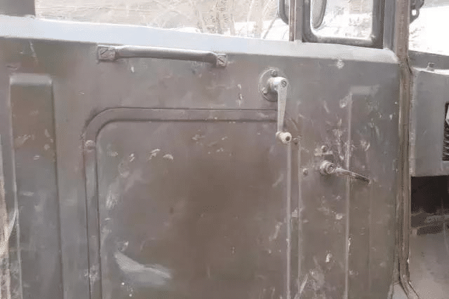 车门的护板也使用了纯金属材质,军车驾驶室内部之所以采用全金属设计是因为金属不易像其他材质一样比较容易破碎,在遇到火焰时不易燃等诸多特点可以在战时最大化保证车组成员的安全。