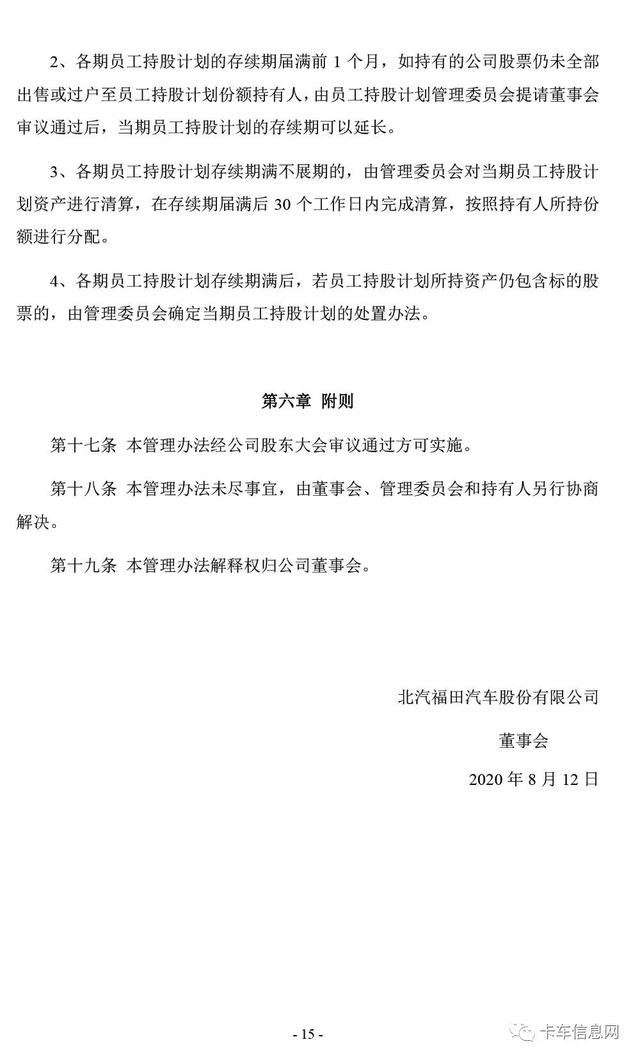 近日,福田汽车召开董事会并于8月12日发布决议公告。此次董事会会议审议了四项议案,这四项议案主要涉及员工持股、解聘副总张伟等内容。