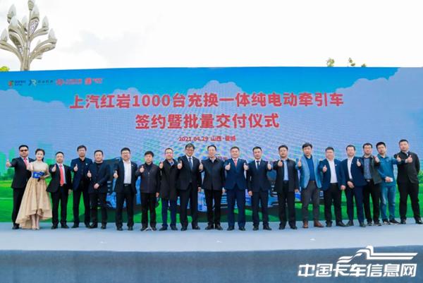 4月29日,上汽红岩1000台充换一体纯电动牵引车签约暨批量交付仪式在山西晋城隆重举行,这意味着继本月16日河北武安2000台钛酸锂纯电动重卡战略签约后,上汽红岩在华北新能源市场再落一子。晋城市政府、国家电投、上汽红岩、祥睿能源等相关领导,晋城运输行业和企业代表,以及媒体朋友,共同出席本次活动,见证绿色晋城新实践。