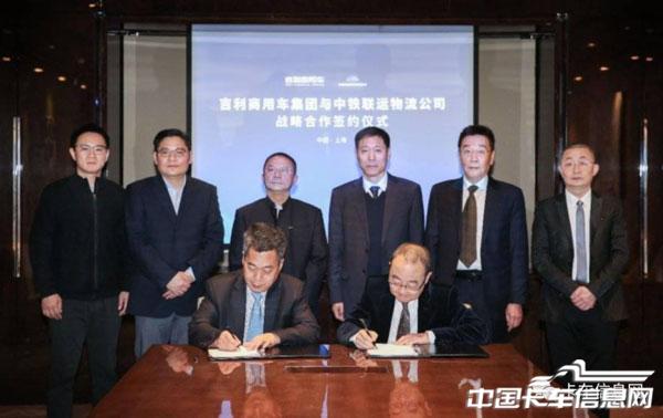 吉利商用车集团首席科学家刘汉如与中铁联运物流股份有限公司总经理李峰代表双方签署战略合作协议。