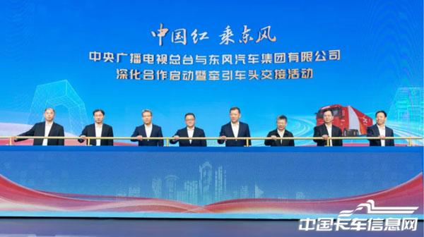 “中国红 乘东风”中央广播电视总台与东风汽车深化合作启动暨牵引车头交接活动今天在北京举行。