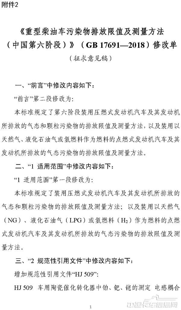 近日,生态环境部在官网发布了关于公开征求国家标准《重型柴油车污染物排放限值及测量方法(中国第六阶段)》(GB 17691-2018)修改单(征求意见稿)意见的通知(以下简称《通知》)。